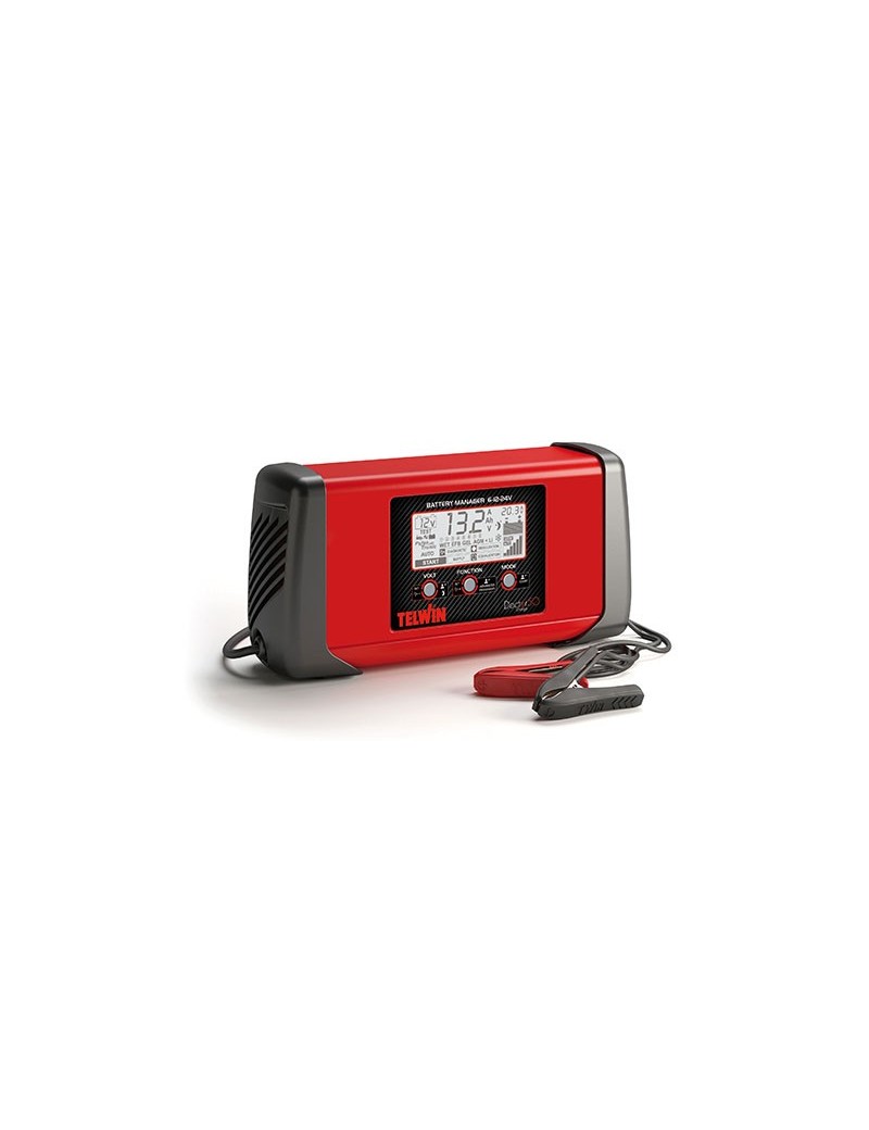 DOCTOR CHARGE 50 230V 6V/12V/24VCaricabatterie elettronico multifunzione (BATTERY MANAGER) per la completa manutenzione di batterie WET, GEL, AGM, MF, PbCa, EFB e Li a 6/12/24V e per attività di supporto negli interventi sui veicoli effettuati nelle officine, carrozzerie e concessionarie.La innovativa tecnologia Power Stream garantisce performance superiori, fino al 50% in più rispetto ai caricabatterie tradizionali.La tecnologia Pulse Tronic garantisce la carica ottimale della batterie attraverso 8 fasi.Doctor Charge 50 svolge 5 funzioni:1. carica e mantenimento automatico delle batterie con tecnologia PULSE TRONIC anche in condizioni ambientali difficili (basse temperature);2. test di batteria quali tensione ai morsetti, capacità di avviamento (CCA) e verifica funzionamento alternatore del veicolo;3. recupero di batterie solfatate o molto scariche e ripristino della funzionalità ottimale con rigenerazione periodica;4. sorgente di alimentazione stabile per i cambi batteria (per la salvaguardia dell'elettronica di bordo), per attività di diagnostica (verifiche di funzionamento effettuate sul veicolo), per mantenere in salute le batterie dei veicoli dimostrativi esposti nei showroom;5. aiuto avviamento dei veicoli.Basato sulla tecnologia SMPS (Switch Mode Power Supply). Nei casi di black-out o di utilizzi ripetitivi, Doctor Charge 50 può predisporsi sulle ultime impostazioni effettuate.Molteplici protezioni presenti. Implementa PFC.