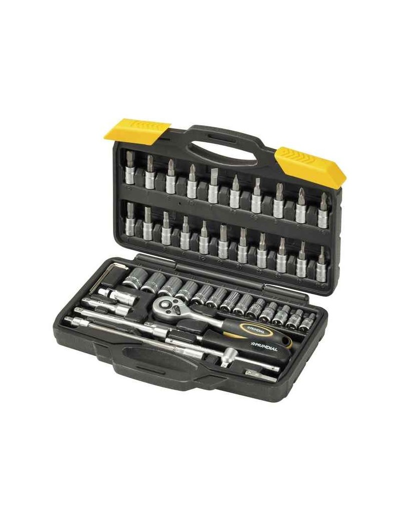 Valigetta contenente:Chiave a bussola: 4 - 4,5 - 5 - 5,5 - 6 - 7 - 8 - 9 - 10 - 11 - 12- 13 - 14.Cricchetto reversibile manico plastica e sgancio rapido.Impugnatura porta bussola.Snodo cardanico.Leva a T.Prolunga da mm 50 e mm 100.Chiave a bussola a intaglio: 4 - 5 - 6.Chiave a bussola Phillips PH: 1 - 2 - 3.Chiave a bussola esagonale maschio: 3 - 4 - 5 - 6 - 7 - 8.Chiave a bussola Pozidriv PZ: 1 - 2 - 3.Chiave a bussola Torx con foro TX: 10 - 15 - 20 - 25 - 30 - 40.Chiave maschio esagonale 1,2 - 1,5 - 2 - 2,5.Adattatore.