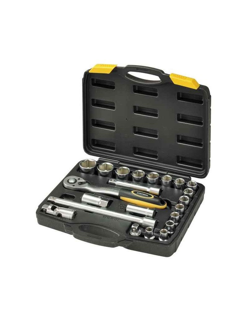 Valigetta contenente:Chiave a bussola: 10 - 11 - 12 - 13 - 14 - 15 - 16 - 17 - 18 - 19 - 22 - 24 - 27 - 30 - 32.Cricchetto reversibile sgancio rapido.Prolunga da mm 125 e mm 150.Snodo cardanico.Leva a T.Chiave a bussola per candele 16, 21.