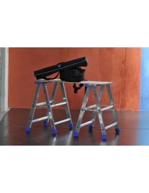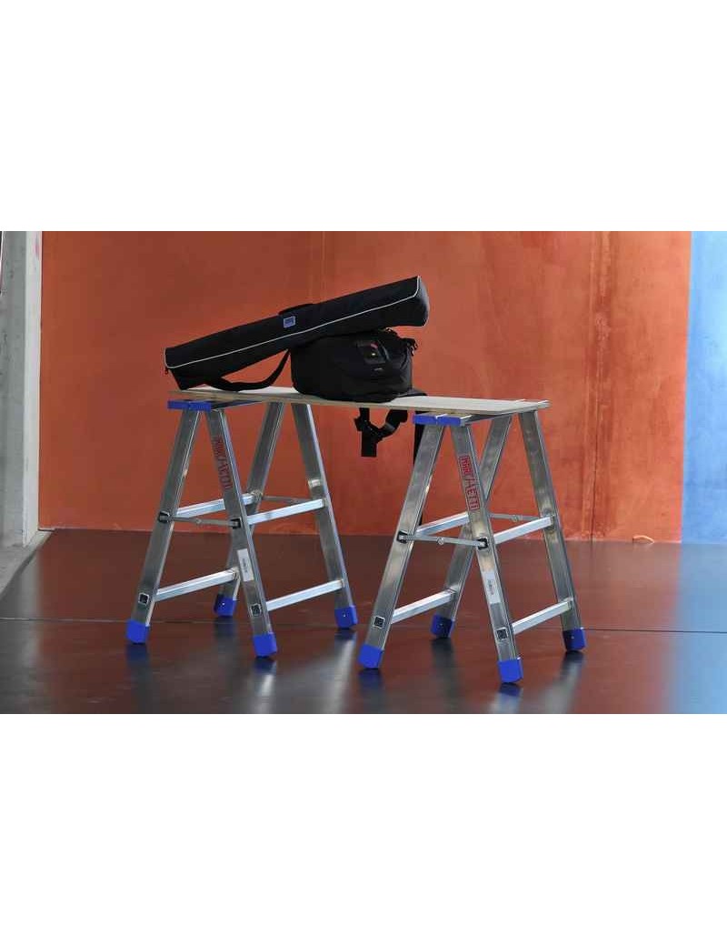 Cavalletti professionali robusti e leggeri, in alluminio elettrosaldato, con profilo grecato. Chiudibili.Con dispositivo antiapertura, H 80 cm, montanti mm 60x25, piolo mm 30x30, piano mm 73x25, Peso Kg 4,6.