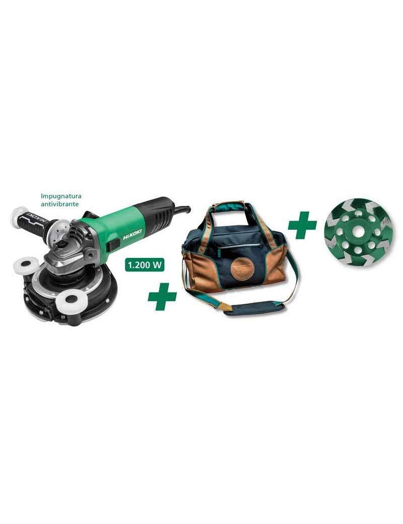 Kit smerigliatrice con disco ? 125 mmPotenza 1.200 WInterruttore lateraleImpugnatura laterale antivibranteProtezione disco a sgancio rapido, regolabile senza utensili2 dischi in dotazione (abrasivo e diamantato)Presa sicura, ridotta circonferenza del corpo macchinaProtezione ZVRP che evita la ripartenza accidentale in seguito ad un'interruzione di correnteApplicazioni: ottima nei lavori di rifi nitura e sbavatura nel settore artigianale.In dotazione: disco abrasivo, disco diamantato, platorello diamantato (HKA125002), cuffia d'aspirazione (KHA125001) e borsone.Diametro del disco 125 mmDiametro foro del disco 22 mmAttacco alberino fi lettato M14 x 2Potenza assorbita 1.200 WVelocità a vuoto 11.500 giri/minCirconferenza impugnatura 202 mmPeso 2,3 kg