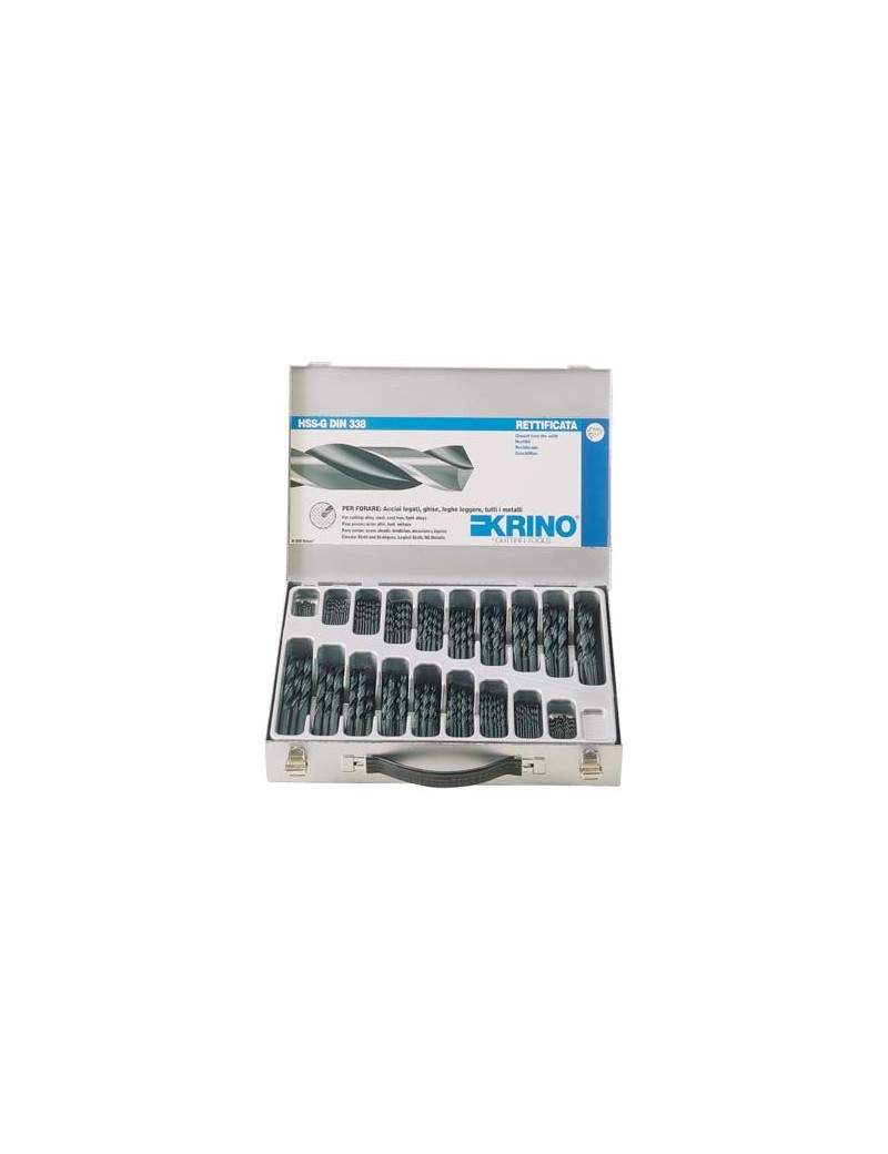 Valigetta punta HSS rettificata da 168 pezzi da d.1 a 13 suddivisi in:d. 1 pezzi 10d. 1,5 pezzi 10d. 2 pezzi 10d. 2,5 pezzi 10d. 3 pezzi 10d. 3,5 pezzi 10d. 4 pezzi 10d. 4,5 pezzi 10d. 5 pezzi 10d. 5,5 pezzi 5d. 6 pezzi 5d. 6,5 pezzi 5d. 7 pezzi 5d. 7,5 pezzi 5d. 8 pezzi 5d. 8,5 pezzi 5d. 9 pezzi 5d. 9,5 pezzi 5d. 10 pezzi 5d. 10,5 pezzi 5d. 11 pezzi 5d. 11,5 pezzi 5d. 12 pezzi 5d. 12,5 pezzi 5d. 13 pezzi 5Punta rettificata per acciaio HSS-G DIN 338. Taglio dei materiale con R <= 800 N/mm2, quali acciai legati, ghise, tutti i metalli in genere, la grafite.