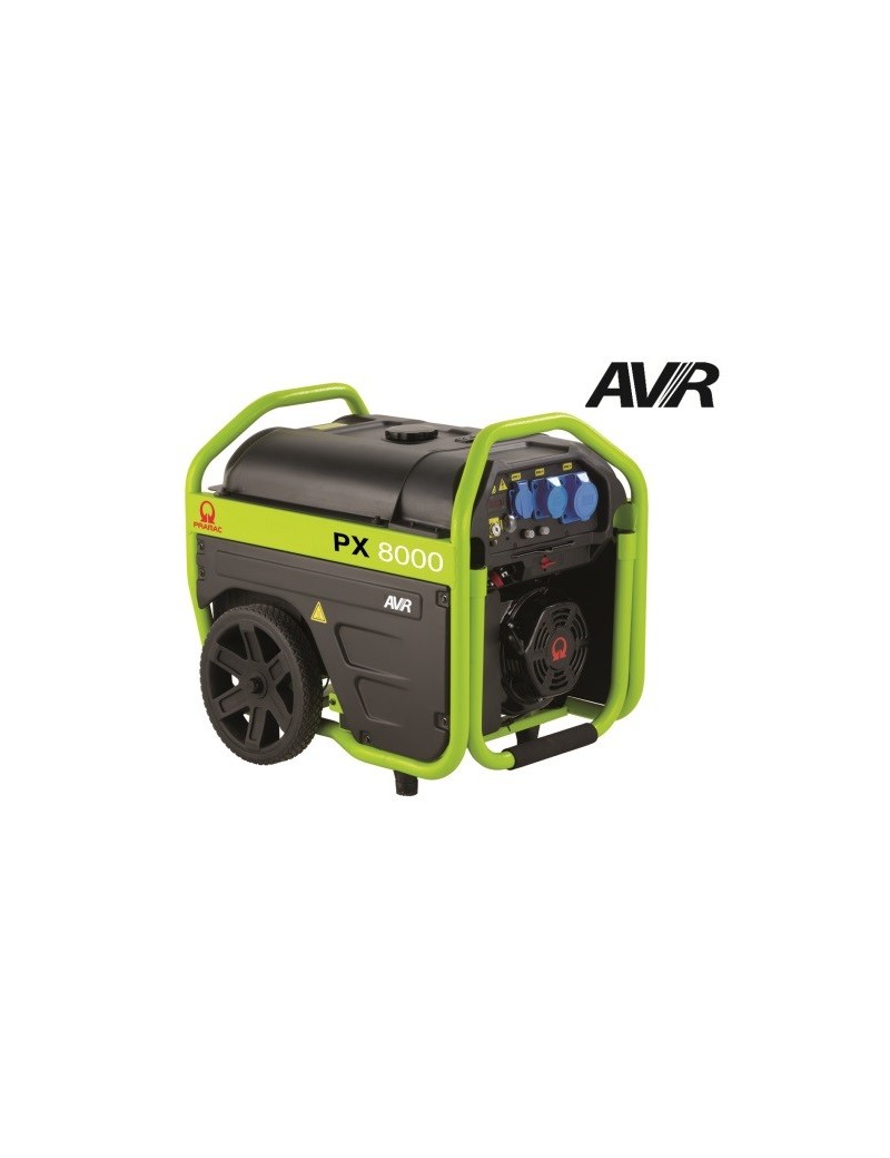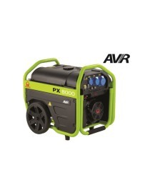 Motore benzina PRAMAC.Raffreddamento ad ariaProtezione Oil GuardAlternatori sincroni con AVRVersioni con avv. elettrico fornite complete di batteria?Robusta struttura serbatoio maggiorato?Kit di trasporto integrato completo di ruote e maniglia?Pannello elettrico con prese, Voltmetro, frequenzimetro e contaore.Caratteristiche tecniche:ErogazioneFrequenza Hz 50Tensione V 230Fattore di potenza cos 0.9Fasi 1PotenzaPotenza nominale massima LTP kVA 6.0Potenza nominale massima LTP kW 5,4Potenza nominale in servizio continuo COP kVA 5.0Potenza nominale in servizio continuo COP kW 4,5