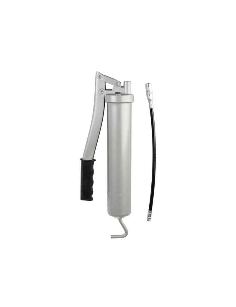 Dati tecnici: Raccordo di erogazione: M10x1Capacità (cm?): 500 ml Possibilità di riempimento: Cartuccia 400g (DIN 1284), o grasso sfusoDiametro pistone (mm): 8Azionamento pistone: Mediante leva manuale Volume/corsa (cm?): 1,2, a 400 bar di contropressionePressione di erogazione (bar): Fino 400Pressione di scoppio (sistema): 850 barPressione di scoppio (testa ingr.): 1200 barManiglia asta stantuffo: Impugnatura a LCoperchio di fondo: LiberoSpessore tubo stantuffo (mm): 1,0Verniciatura: Argento Peso (kg): 1,25 Specifiche: Tubo flessibile alta pressione, M10x1, 8 x 300 mm (12 656). Testina hydraulic a 4 griffe, M10x1Caratteristiche particolari:Funziona con grassi fino a NLGI 2. Stantuffo con guarnizione anulare per grasso sfuso o cartucciaNorma DIN 1283. Pistone e cilindro ad alta precisione (totale assenza di grassaggio apparente)Rendimento inalterato anche dopo 5000 cicli di lavoro. Testa dell'ingrassatore in zinco pressofuso Z410. Presa affidabile grazie alla forte zigrinatura. Buona impugnatura dello stantuffo. Leva con manopola antisdrucciolo. Coperchio di fondo libero con pezzo di bloccaggio dello stantuffo - permette l'aiuto dell'avanzamento e della compressione del grasso sfuso - permette l'inserimento dello stantuffo nelle cartucce danneggiate. Il grassaggio richiede il minimo dispendio di forza grazie agli ottimi rapporti di leva. Sfiato mediante mezzo giro della testa