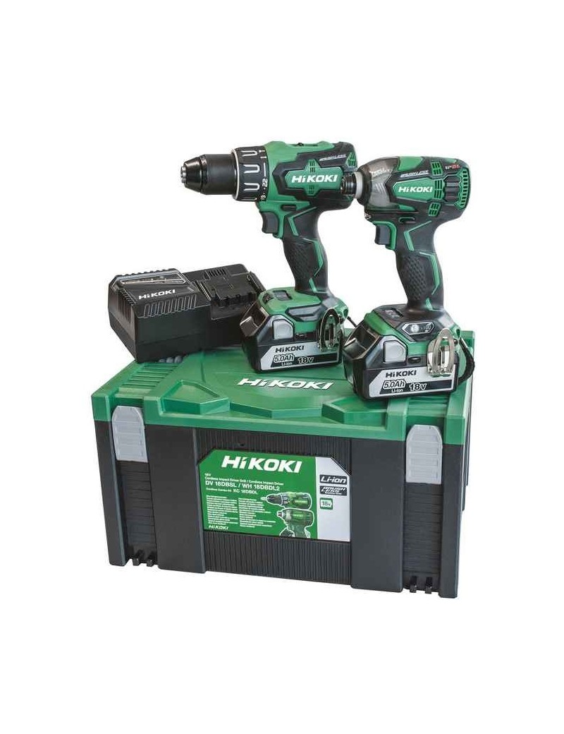 Kit composto da:Trapano avvitatore con percussione DV18DBSLAvvitatore ad impulsi 1/4" WH18DBDL22 batterie da 5,0 Ah 18VCaricabatterieValigetta Stackable.Kit composto da un trapano avvitatore Brushless con percussione DV18DBSL e da un avvitatore ad impulsi Brushless WH18DBDL2, comprensivo di caricabatteria UC18YFSL e 2 batterie al litio con tensione 18 V - 5 Ah, fornito in pratica valigetta Stackable. Entrambi i modelli sono dotati di motore Brushless che consente prestazioni e versatilità di lavoro eccezionali unite ad un elevato prolungamento della vita di servizio della macchina dovuto all'assenza delle spazzole le quali sono soggette a regolare manutenzione, danno luogo a scintille e producono attrito con l'indotto aumentando la temperatura d'esercizio e riducendo le prestazioni. Il trapano avvitatore DV18DBSL è dotato di percussione ed eroga un'elevata coppia di serraggio di ben 70 Nm. L'avvitatore ad impulsi WH18DBDL2 è dotato dell'innovativo meccanismo a triplo battente Triple Hammer che riduce le vibrazioni effettuando 3 impatti per ogni rotazione (anziché i 2 convenzionali) nelle applicazioni leggere, mentre esegue 1,5 impatti per rotazione nelle applicazioni gravose. Un pulsante permette di regolare il comportamento della macchina, scegliendo tra 4 modalità elettroniche di lavoro. Inoltre il modello WH18DBDL2 è conforme a IP56 che garantisce un'ottima protezione contro polvere ed acqua.Batterie al litio slide, leggere e compatte, dotate di circuito di protezione per singola cella che garantisce una lunga vita di servizio e sicurezza.