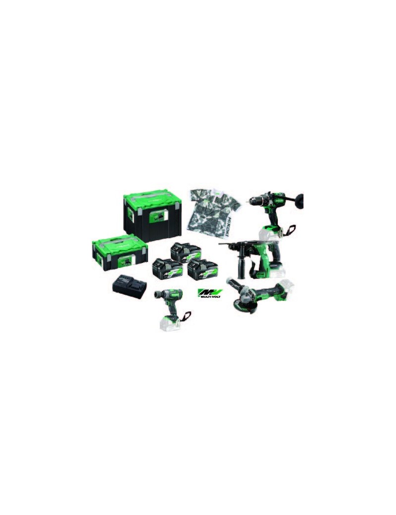 Kit composto dai seguenti prodotti:Trapano avvitatore con percussione DV18DBL2 (base) Motore: Brushless (senza spazzole)Coppia massima 136 NmMartello tassellatore DH18DBL (base)Foratura calcestruzzo / acciaio / legno: ? 26 / 13 / 27 mmAttacco SDS-plusMotore: Brushless (senza spazzole)Energia per singolo colpo: 2,2 Joule (EPTA)Smerigliatrice G18DBL (base)? del disco: 125 mmMotore: Brushless (senza spazzole)Velocità a vuoto: 9.000 giri/minIn dotazione:: n° 3 batterie BSL36A18, polo HiKOKI, n° 1 caricabatteria UC18YSL3, n° 2 valigette stackable.SCEGLI L'OMAGGIO TRA LE DUE SEGUENTI MACCHINEAvvitatore WH18DBDL2 (base)Motore: Brushless (senza spazzole)Avvitatore WR18DBDL2 (base)Motore: Brushless (senza spazzole)