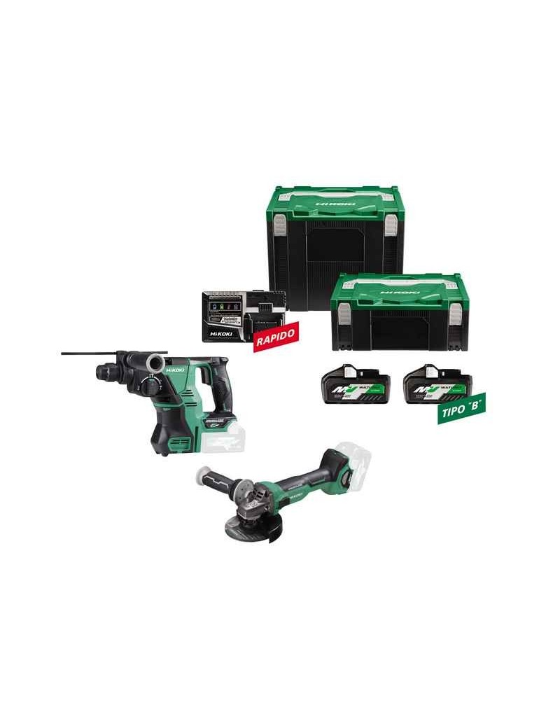 Il kit comprende:Tassellatore batteria solo corpo DH36DPA con le seguenti caratteristiche:Tassellatore elettropneumatico SDS-plus da 28 mm a 3 modalità a batteria 36 V MutiVolt, leggero e compatto che garantisce le più alte performance della sua classe come durata, affidabilità e potenza di battuta. Completo con tutte le protezioni possibili, sia per l'utilizzatore che per la macchina.NOTE TECNICHE:- Potente motore Brushless a 36V- Utilizza la nuove batterie MV BSL36B18 con indicatore di carica (non comprese)- Meccanismo pneumatico battente ad alta affidabilità- Dispositivo di sicurezza elettronico RFC- Frizione di sicurezza meccanica a slittamento- Compatibile con l'estrattore polveri HTA402933 (1TH230)ApplicazioniPotente e pratico da usare per qualsiasi tipo di foro grazie all'alta efficienza del dispositivo di percussione. Alta capacità di perforazione fino ad un massimo 28 mm nel calcestruzzo (50 mm con punta a corona), 32 mm nel legno, 13 mm nell'acciaio.SpecificheAttacco SDS-plus? foro nel calcestruzzo 28 mm? foro nel calcestruzzo con punta corona 50 mm? foro nel legno 32 mm? foro nell'acciaio 13 mmVelocità a vuoto 0 - 1.100 giri/min.Percussioni a pieno carico 0 - 4.300 colpi/min.Energia per singolo colpo (EPTA) 3 JouleLunghezza 351 mmLarghezza 85 mmAltezza 220 mmPeso (con batteria BSL36A18) 3,9 KgAccessori in dotazione: impugnatura laterale, delimitatore di profondità, valigetta stackable---------------------------------Smerigliatrice a batteria solo corpo G3613DA con le seguenti caratteristiche:Smerigliatrice a batteria 36 V Multi Volt, leggera, potente e maneggevole, ma con prestazioni simili ad un modello a filo da 1000 W. Al top della tecnologia della sicurezza, con tutte le protezioni possibili, sia per l'utilizzatore che per la macchina.NOTE TECNICHE:- Potente motore Brushless a 36V- Utilizza la nuove batterie MV BSL36A18 - BSL36B18 con indicatore di carica- Circonferenza impugnatura molto ridotta (146mm)- Velocità variabile con selettore da 3.000 a 9.500 giri/min.- Funzione Auto Mode (cambio automatico di velocità a pieno carico)- Avviamento progressivo- Interruttore laterale a slitta- Freno motore elettronico- Protezione sovraccarico- Protezione anti-contraccolpo- ZVRP (protezione anti-riavvio)Applicazioni:Taglio, sbavatura leggera e pesante, finiture varie.Specifiche? del disco 125 mm? foro del disco 22 mmAttacco alberino filettato M14 x 2Velocità a vuoto 3.000 - 9.500 giri/minVelocità AUTO MODE 5.500 a vuotoLunghezza 358 mmAltezza totale 139 mmLarghezza 141 mmPeso (EPTA) 2,8 kgAccessori in dotazione: Impugnatura laterale antivibrante, chiave, valigetta stackable.-------------------------------n. 2 batterie Modello batteria BSL36B18 MultiVoltDati tipici batteria 36V - 4 Ah / 18V - 8 AhCaricabatterie UC18YSL3