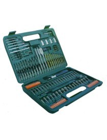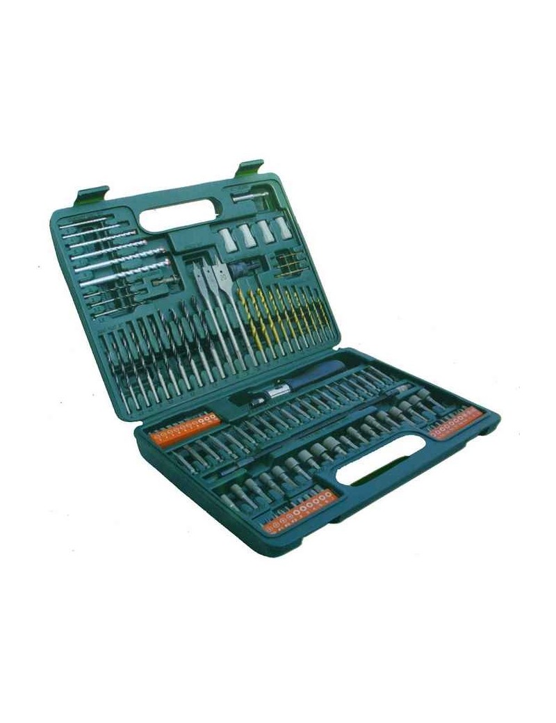 La cassetta comprende:n° 2 portainserti magnetici;n° 4 centratori per viti + cacciavite manuale;N°1 svasatore attacco esagonale1/4;n°1 prolunga flessibile esagono 1/4- lunghezza 280mm:inserti assortiti a taglio, a croce Phillips e a croce Pozidriv;n°3 inserti a testa quadra Robertson misure 1-2-3;n°14 inserti torx assortiti;n° 18 bussole assortite;n°13 punte in HSS,n° 13 punte da legno;n° 6 punte per muro;n° 3 mecchie piatte;