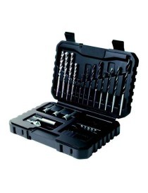 Set che contengono i più comuni accessori per tutti i lavori di fai da te:4 punte muratura x 5,6,7,8mm, 4 punte legno x 4,5,6,8mm, 5 punte metallo x 2,3,4,5,6mm, 3 x bussole 7,8,10mm, 14 inserti x 25mm (1 x Ph1, Ph2, Ph3, 1 x Pz1, 2 x Pz2, 1 x Pz3, 1 x SL 4,6,7.2, 1 x Torx 15,20,25 & 30), 1 x adattatore magnetico, 1 x SvasatoreDisponibile solo durante la campagna promozionale.