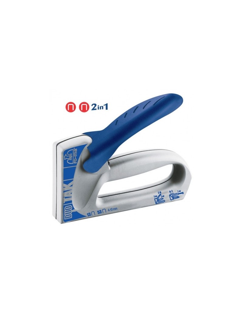 Applicazioni:assemblaggio di telai e cornici. Lavori di decorazione. Per fissare tappezzeria, ricopertura di divani e mobili. Per fissare tutti i tipi di carta e stoffa, zoccolini e profili in legno, per allestimenti stand, arredamento negozi, interni di case, roulettes, camper.Caratteristiche:maniglia in acciaio con nuova copertura in plastica SOFT TOUCH per un'impugnatura confortevole ed ergonimica. Regolatere di potenza.Punti supportati 105 - 108 - 110.
