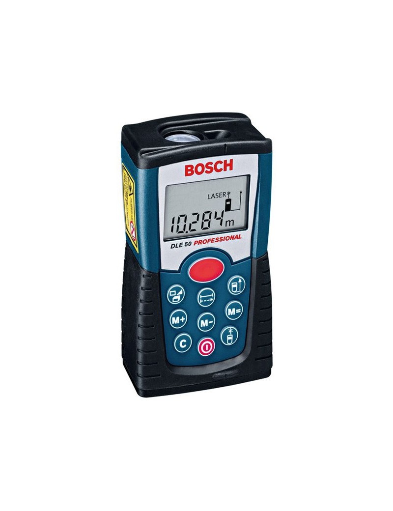 Rilevatore di distanze laser DLE 50, il più piccolo della sua categoria: - Misurazione facile e precisa di lunghezze, superfici e volumi - Campo utile fino a 50 m, precisione millimetrica - Grazie al sensore di misura si possono eseguire le misurazioni anche in punti di difficile accesso Ulteriori vantaggi- Grazie al sensore di misura si possono eseguire le misurazioni anche in punti di difficile accesso - Numerose funzioni quali la memorizzazione delle misure, la funzione di addizione e sottrazione, la misura indiretta delle lunghezze - Utilizzo semplice e chiaro, con ampio display retroilluminabile - Attacco per treppiede 1/4" - Softgrip Caratteristich tecniche:Diodo laser: 635 nm, < 1mW Campo di misura: 0,05 - 50,00 m Classe laser: 2Precisione di misura, tipica: ? 1,5 mm (0,3 - 30 m) Tempo di misura tipico: < 0,5 s Tempo di misura max.: 4 s Alimentazione: 4 ? LR03 da 1,5 V (AAA) Disinserimento automatico: 5 min Peso, ca.: 0,175 kg Lunghezza: 100 mm Larghezza: 58 mm Altezza: 32 mm