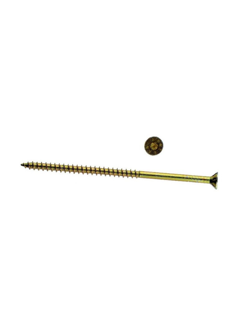 Rapidità di fissaggio, perché non necessita di preforo. Elevata resistenza al taglio grazie all'indurimento ottenuto per trattamento termico. Fresature sottotesta per creare l'alloggiamento nel legno da fissare. Zincatura gialla minimo 5 micron. Rondella dedicata per un corretto fattore estetico e per permettere una distribuzione omogenea del serraggio della vite portante.