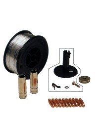 Kit composta da:-nr 1 bobina filo acciaio-nr 1 kit tubo gas + raccordo-nr 1 rullino traino- nr 1 riduttore di pressione-nr 10 tubetti di contatto-nr 1 tubo gas 0,2 M-nr 2 ugelli conicix Bimax 140, 4.165, 152, 162, Technomig Dual Synergic, Maxima 160, 190, 200 Synergic