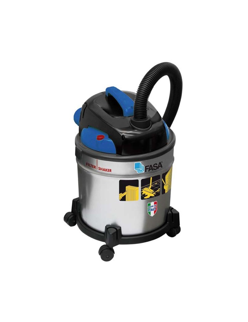 Aspiratore aspiraliquidi. Motore silenziato. Doppio isolamento elettrico. Sistema aspirante con raffredamento by-pass. Funzione soffiante.Vani portaccessori e porta cavo.Fusto in acciaio.Scuotifiltro automaticoDotazione standard: Tubo-flex ml.1,5, 2 tubi prolunga rigidi, cavo da ml.4.Bocchetta multiuso per aspirazione polvere e liquidi. Lancia piatta. Filtro spugna. Filtro in stoffa.Dati tecnici: 1000W (max 1200W), Capacità lt.20.Portata d'aria 30 l/s.Depressione mbar 180.