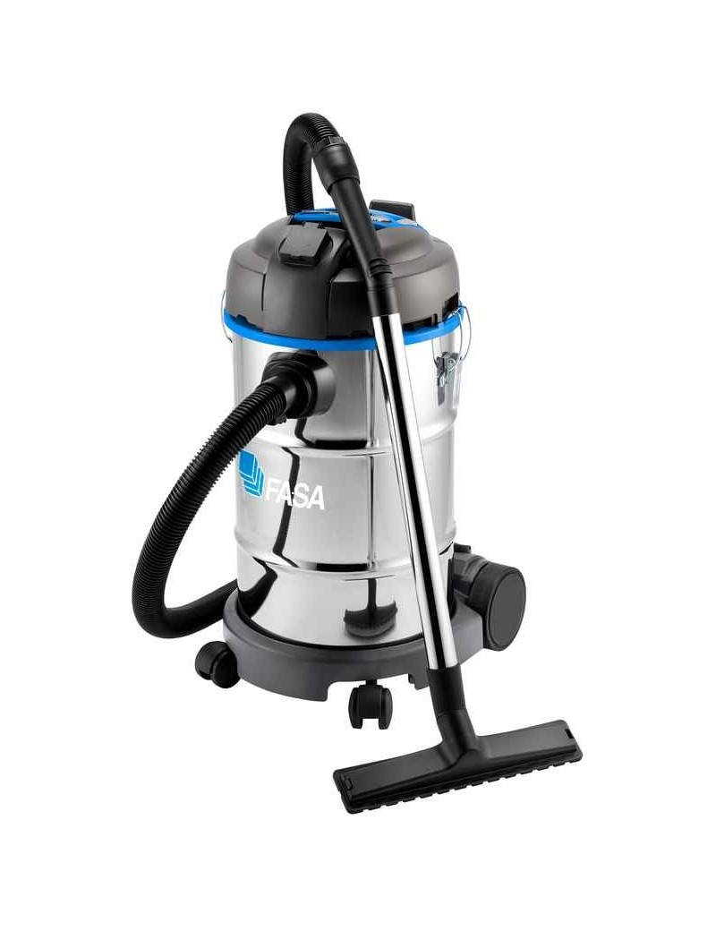 Aspiratore aspiraliquidi per elettroutensili. Sistema aspirante con raffreddamento by-pass.Motore silenziato. Fusto in acciaio inox. Presa per elettroutensili (max 2200W).In dotazione: Tubo flessibile da ml.4, tubo prolunga rigido in acciaio cromato, curva con valvola di scarico, supporto accessori per pavimenti.Caratteristiche tecniche: Motore da W 1400.Capacità lt.30.Portata d'aria l/s 70.Depressione mm. H2O: 2700